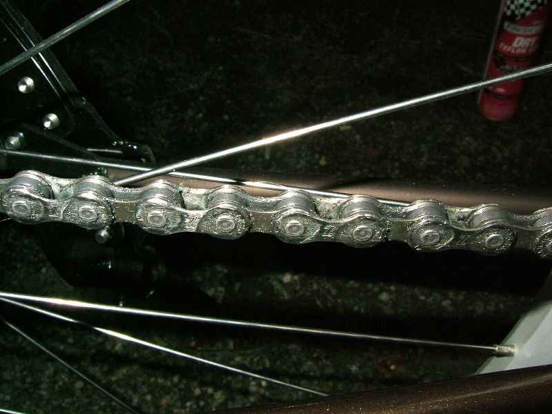 チェーンの清掃と注油をしてみた。 と、言っても油汚れを落とすディグリーザーなるものは用意していなかったので、最初にTシャツを引き裂いた布切れでチェーンを拭き、その後チェーンにオイルを大量にかけて余分な油を拭き取っただけ。 結構綺麗になった。 清掃後の写真はフラッシュを炊いたので余計に綺麗に見える。 襤褸切れを使うと、気をつけないと糸くずを巻き込んでしまうのが難点。 使ったオイル↓ 清掃前↓ 清掃後↓ PR