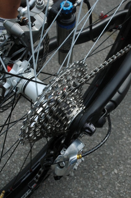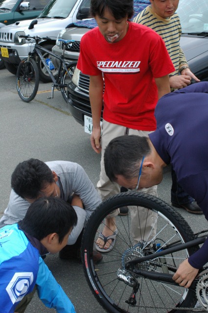 富士見パノラマにあった、スペシャライズドの試乗車Stumpjumper FSR carbonに少し乗りました。恐ろしくラグジュアリーな乗り心地でした。もっと詳細なインプレッションはこちらへ。 SramのMTB用の10速コンポXXが装備されており、正式な読み方はエックスエックス?というのでしょうか。業界の人はちょめちょめ、ぺけぺけと呼んでいました。 ↓10速カセットの周りで説明を聞く人たち。