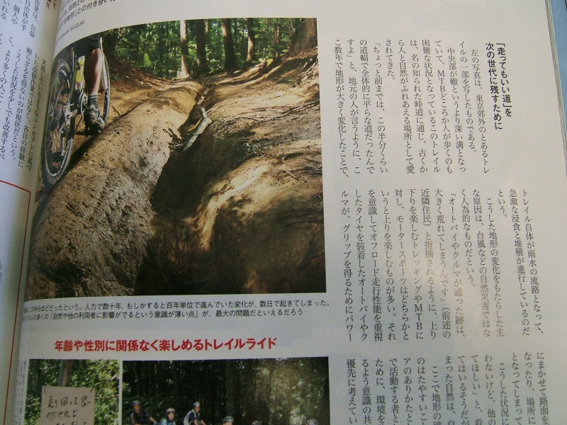 しばらくMTBのレースには出ないので、マウンテンキング2.4を引っ張り出して2.5気圧入れて走ってきました。 転がりはそこそこ軽い割には、衝撃をポヨンポヨン吸収してくれるのでリジットバイクが楽しくなります。 話は変わってバイシクルクラブという自転車雑誌に東京近郊のトレイルの写真が載っていました。この場所は見覚えがある!ということでおそらく同じ場所付近?で写真を撮ってみました。 ちなみに、アメリカだとこんなローカルの非営利団体が、地主との折衝やトレイルの整備を主導しているみたいです。個人ライダーからの会費と、企業、ショップからの資金で運営されており、Trail Workと銘打って保全活動を行ったり各種イベントを企画しているようです。 (個人的にはユンボ使ったりラダーを作ったりしたい・・) PR