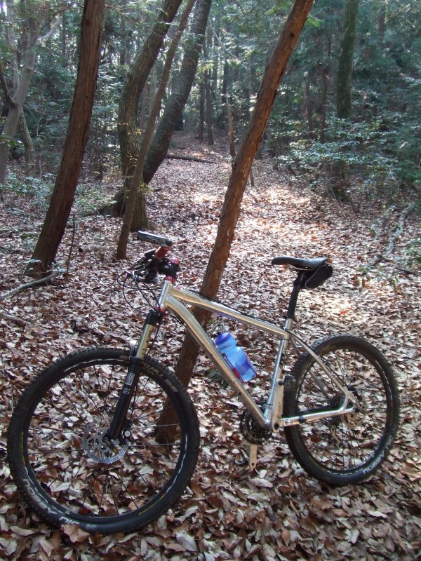 通販で靴を買ったついでにタイヤも買いました。すんごい太いです。 日本にはスーパーソニックという最軽量のバージョンしか入荷していないようですが、これはノーマルのケプラービードのMountain King 2.4 Fold というタイヤです。 ノブの間隔も結構開いているので泥もすぐに落ちます。ノビーニックだと明らかに滑り出す位まで車体を傾けたり、急なブレーキングをしてみても、すべる気配がありません。ので、XC車で使うには過剰なグリップがあるかも知れません。2気圧以下の低圧で使用するとカーブ時にタイヤがよれるのがわかり恐ろしいので2.0-2.2ぐらいで使用しています。 後輪にはまだ使っていないので、漕ぎがどのくらい重くなるかは不明です。