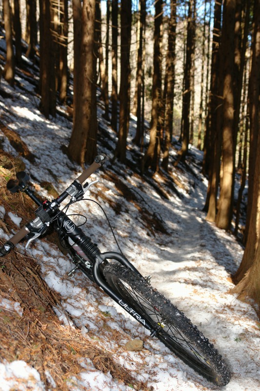 エア漏れ激しく、オーバーホールも兼ねて修理に出したヘッドショックが戻ってきたので、しばらくぶりにスカルペルに乗りました。 ヘッドショックは修理前とは別物のサスになって戻ってきました。 前後の加重バランスの研究のために、通勤時にクロスバイクで堤防降りや段差降り練を密かにおこなっていたためか、少し操縦がうまくなった気がします。 山中では北向きの斜面や日の当たらないところに雪が残っていました。雪の道は、雪にハンドルを取られてこけた以外は、自転車も泥だらけにならず結構快適でした。ただし、一定以上の斜度の坂は上れないので乗車率は下がります。 人気blogランキングへ にほんブログ村 写真ブログへ