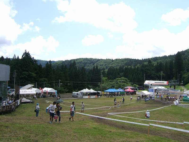 マウンテンバイクのXC(クロス カントリー)ジャパンシリーズに友人が出走するので、観戦に長野まで行った。 前日は雨で、選手は泥まみれでレースしていました。有名な選手を間近に見れたりして、見るだけでも楽しかった。 左下のスキー場の登りは一回上って見たいと少しだけ思った。
