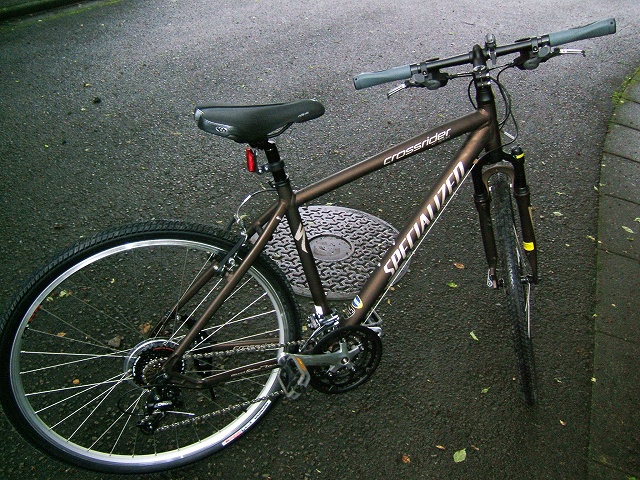 CROSSRIDER XC SPORT,色はルートビールというらしいが、つや消しの茶色といった感じ。結構渋くて気に入っている。 ブレーキレバーがなんか短い!と最初思ったが、ブレーキは2本の指だけで操作するからだということが後から判明した。